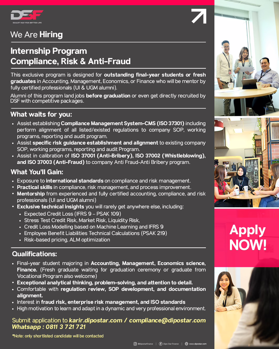 PT Dipo Star Finance is opening opportunities for final year students and fresh graduates majoring in Economics, Accounting, and Management 🚀
