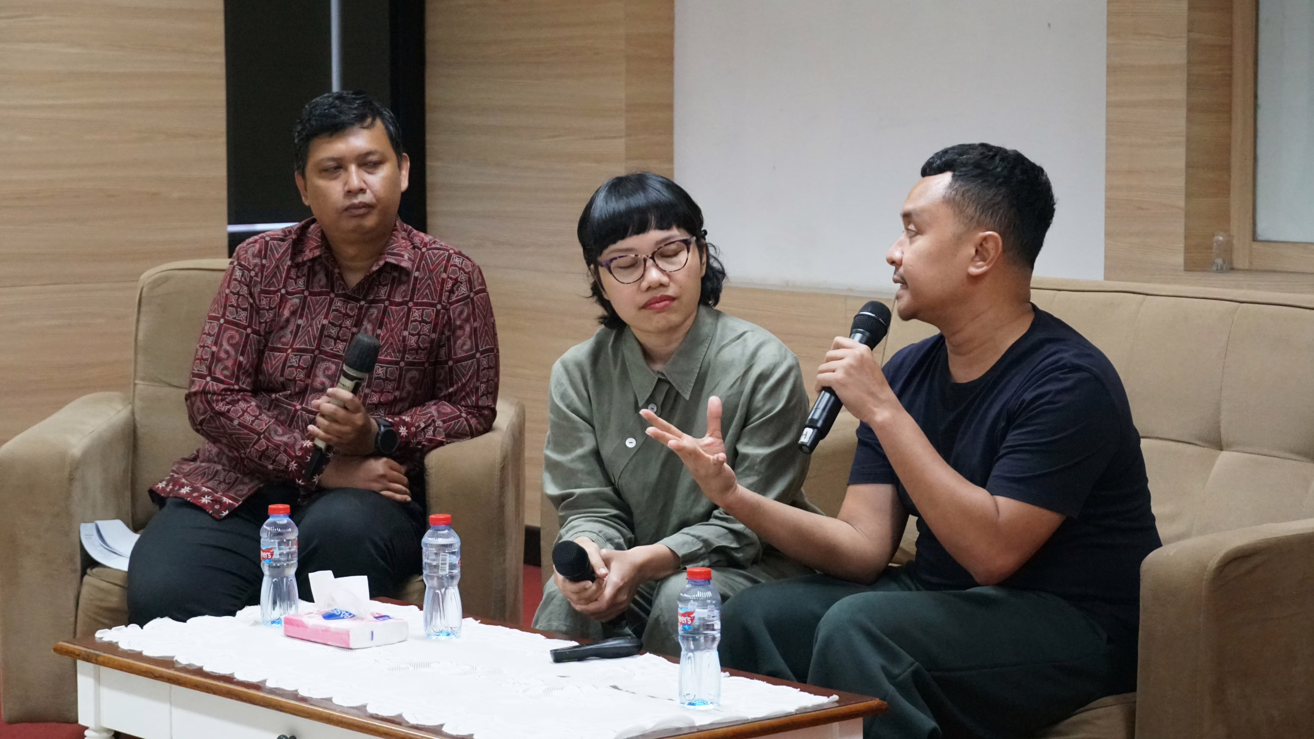 Sesi diskusi itu menghadirkan Ridla An-Nuur, seorang film publicist sekaligus pendiri sebuah rumah produksi dan distribusi film Goodwork, dan Ahmad Yuniardi, seorang editor film yang terlibat dalam sejumlah film ternama, seperti Tukar Takdir (2025) dan Penyalin Cahaya (2021).