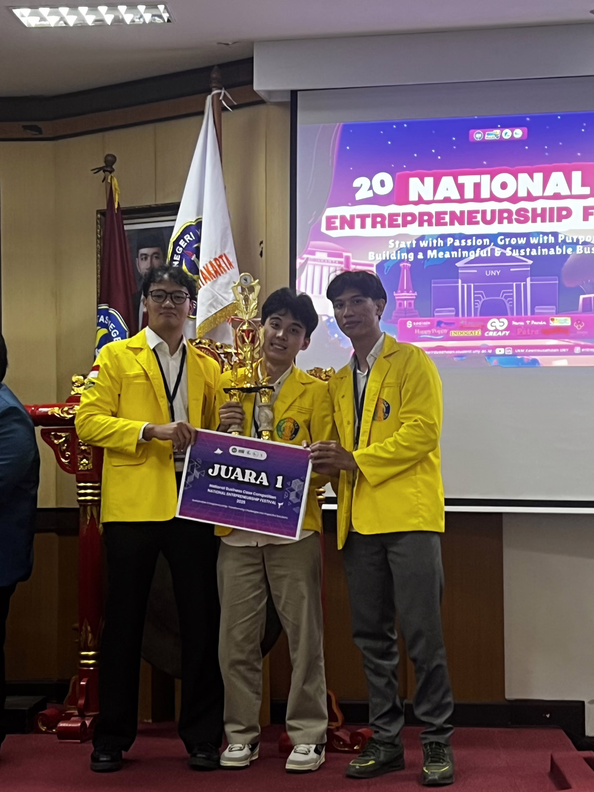 Depok-Tiga mahasiswa program studi (prodi) Administrasi Keuangan dan Perbankan, Program Pendidikan Vokasi, Universitas Indonesia (UI), meraih Juara 1 pada ajang National Entrepreneur Festival 2025 yang diselenggarakan oleh Universitas Negeri Yogyakarta beberapa waktu lalu. Tergabung dalam tim Kita-Kita, yaitu Reynaldi Achmad Haryanto, Muhammad Jafar Althaf, dan Nadhif Sahrul Ramadhan, mereka berhasil mengungguli finalis lain dari berbagai perguruan tinggi seperti Universitas Gadjah Mada, Institut Teknologi Bandung, IPB University, Universitas Airlangga, Universitas Pembangunan Nasional Veteran Yogyakarta, hingga Universitas Muhammadiyah Yogyakarta.