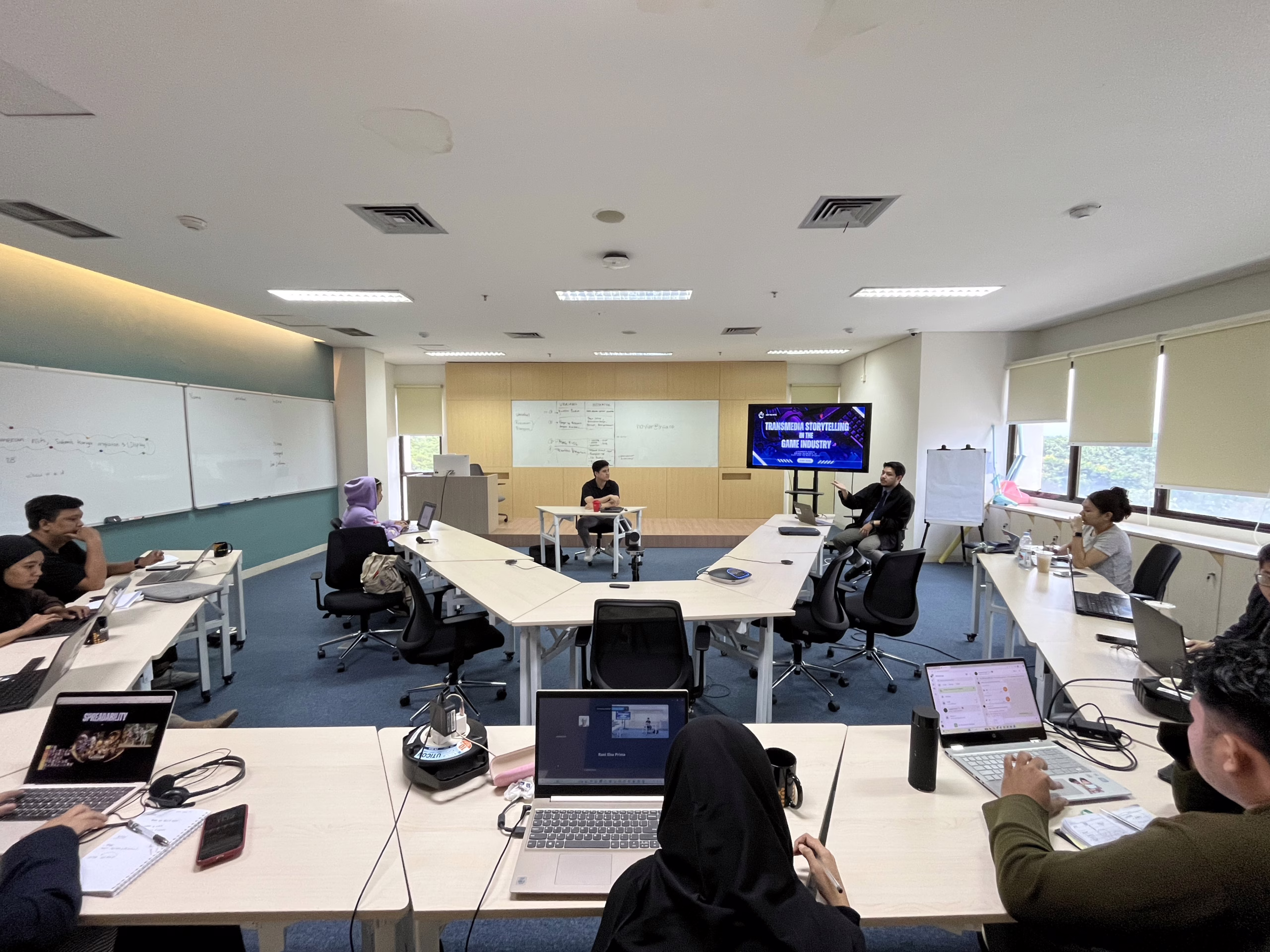 Dalam pemaparannya, Livander menjelaskan bagaimana industri gim telah menjadi salah satu generator utama transmedia storytelling di era digital. Menurutnya, gim tidak lagi berdiri sendiri sebagai produk hiburan, tetapi menjadi pusat ekosistem cerita yang bisa diperluas ke media lain. “Ketika cerita dikembangkan secara transmedia, kita tidak hanya menciptakan produk, tetapi membangun dunia. Dunia inilah yang memungkinkan audiens terhubung lebih dalam dan mengikuti narasi di berbagai platform,” ujar Livander.